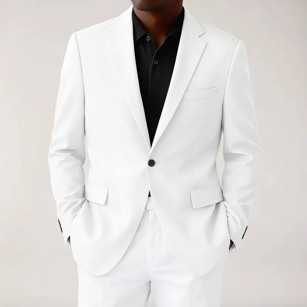 Men’s White Blazer Jacket – Two-Button, Notch Lapel, Flap Pockets