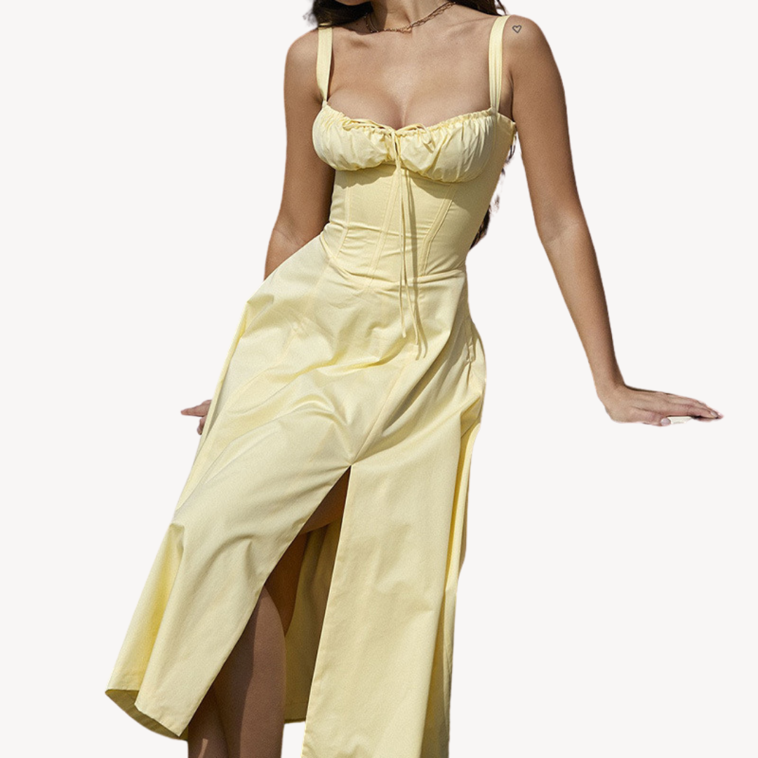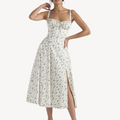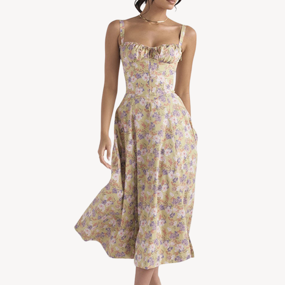 Floral Corset Midi Dress – Cotton A-Line with Pastel Print