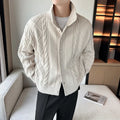 Men’s Chunky Knit Cardigan Sweater with Cable Pattern