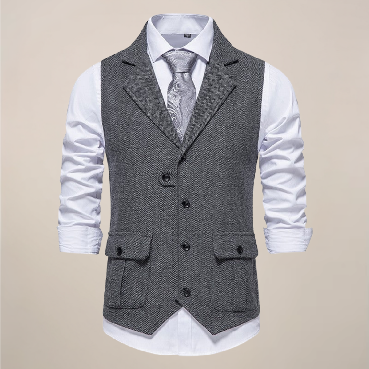 Men’s Modern Tweed Waistcoat – Classic Notch Lapel Formal Vest