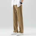 Men's Straight-Leg Dress Trousers - Elasticated Waist Pleated Front Slant Pockets Smart Casual Full Length Style