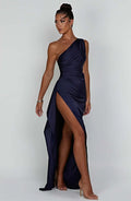 Women’s Asymmetric Evening Maxi Dress – Elegant Gown with High Split