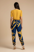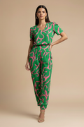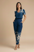 Modern and easy to wear, this coordinated set brings polish without feeling overdone. The clean V-neck blouse keeps the look light and refined, while the patterned trousers add visual interest with a flattering, relaxed line. Ideal for days that move from casual plans to more considered moments, offering effortless style with a composed finish.