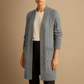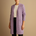 Women’s Cable Knit Long Cardigan – Open Front Design with Pockets