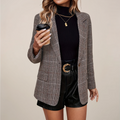 Women’s Checked Blazer – Notch Lapel, Single-Breasted, Longline
