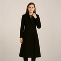 Women’s Long Trench Coat – Tailored Double-Breasted Design with Defined Waist