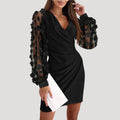 Women’s Mini Wrap Dress – Sheer Chiffon Sleeves & V-Neck