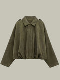 Women’s Short Jacket – Faux Suede, Oversized, Elasticated Hem