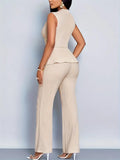 Women's Sleeveless Wrap Waist Top & Flared Trousers Set