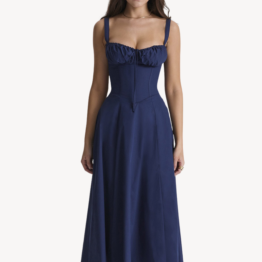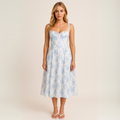 Floral Corset Midi Dress – Cotton A-Line with Pastel Print