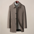 Men’s Herringbone Car Coat – Point Collar, Button Front