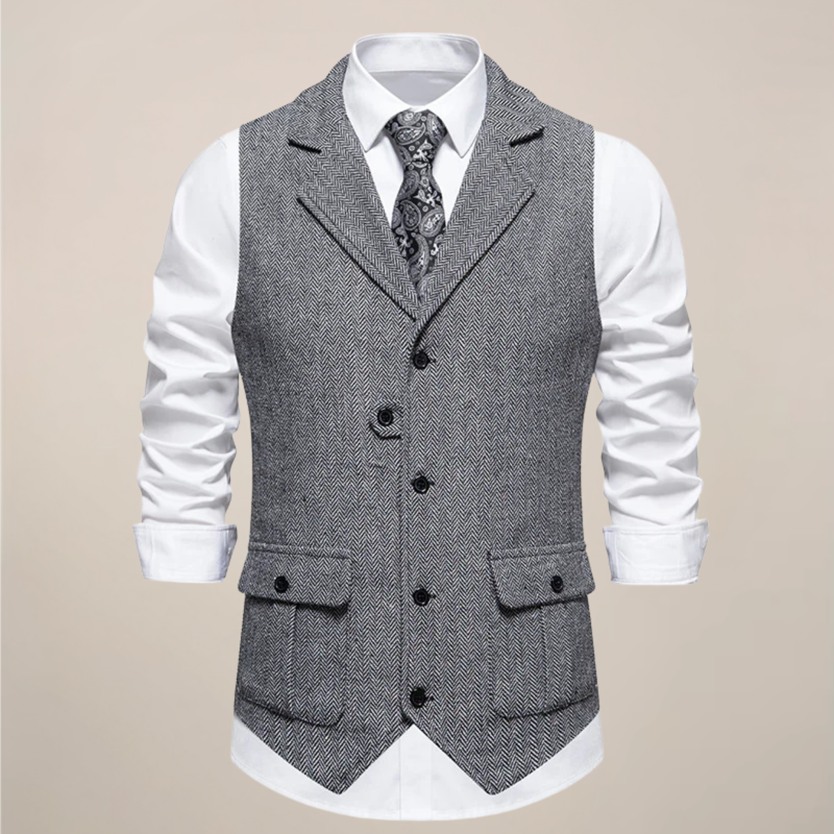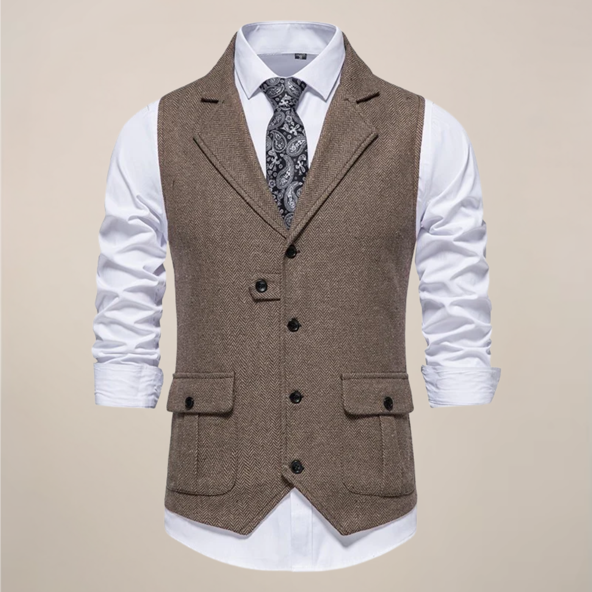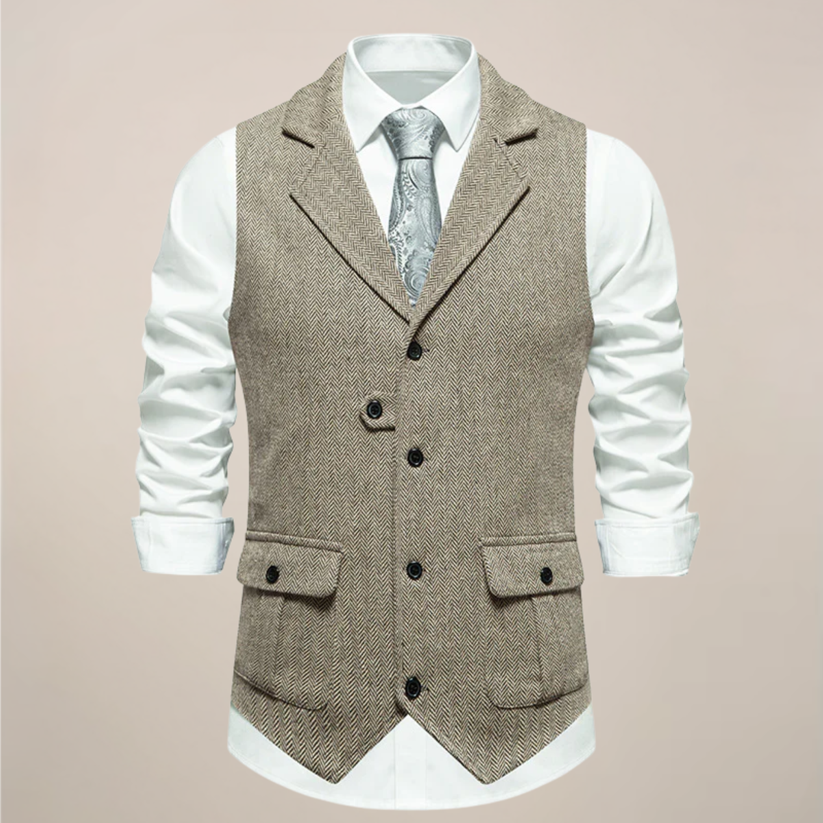 Men’s Modern Tweed Waistcoat – Classic Notch Lapel Formal Vest