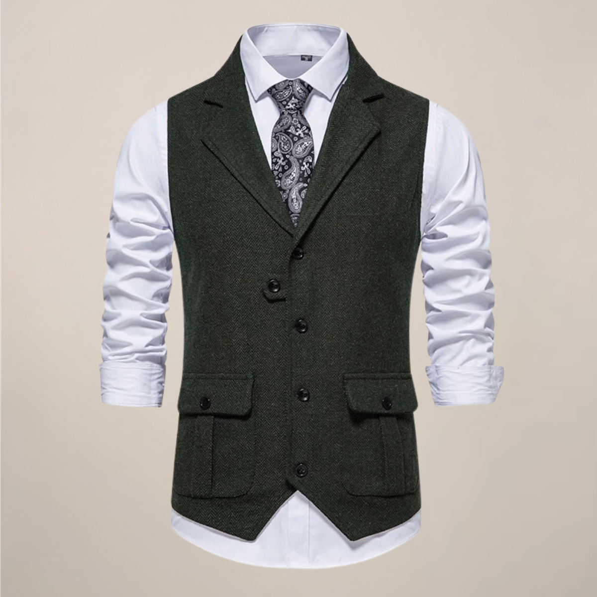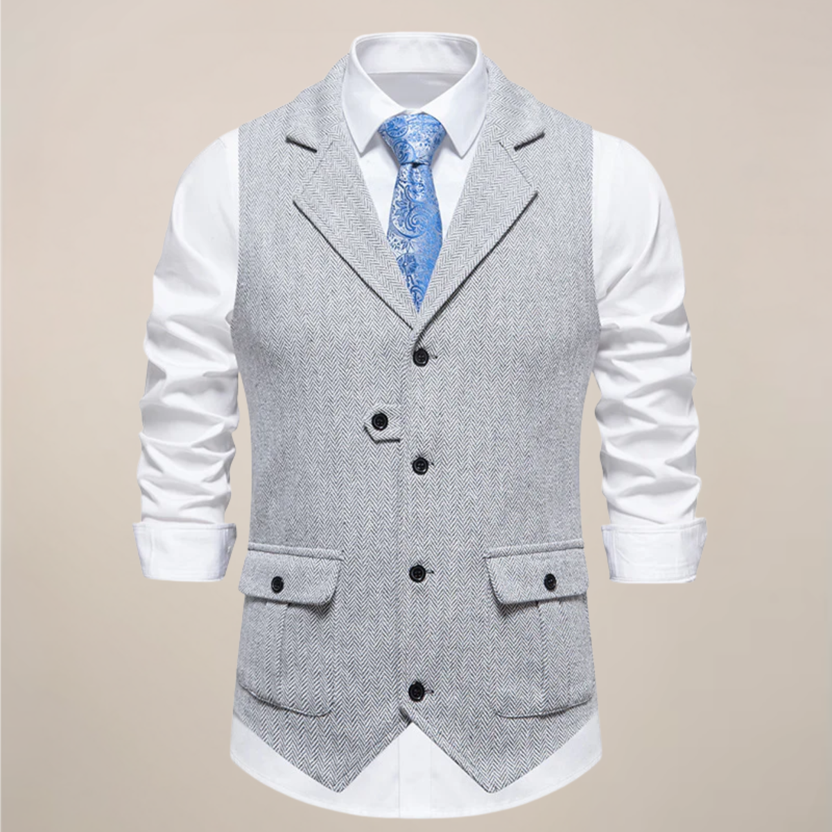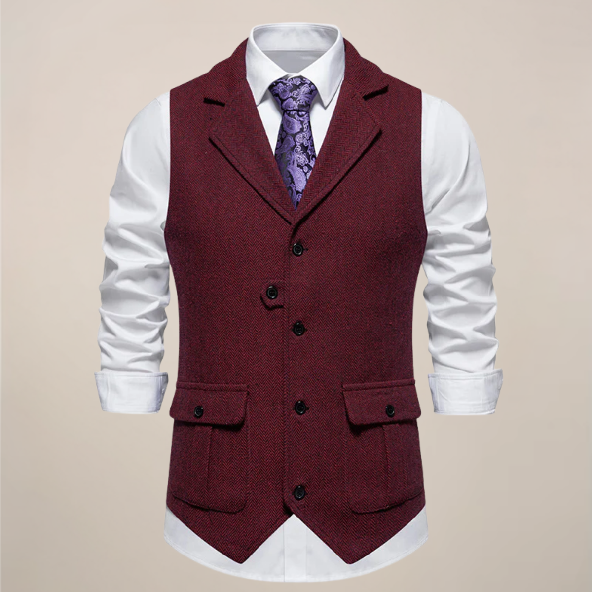 Men’s Modern Tweed Waistcoat – Classic Notch Lapel Formal Vest