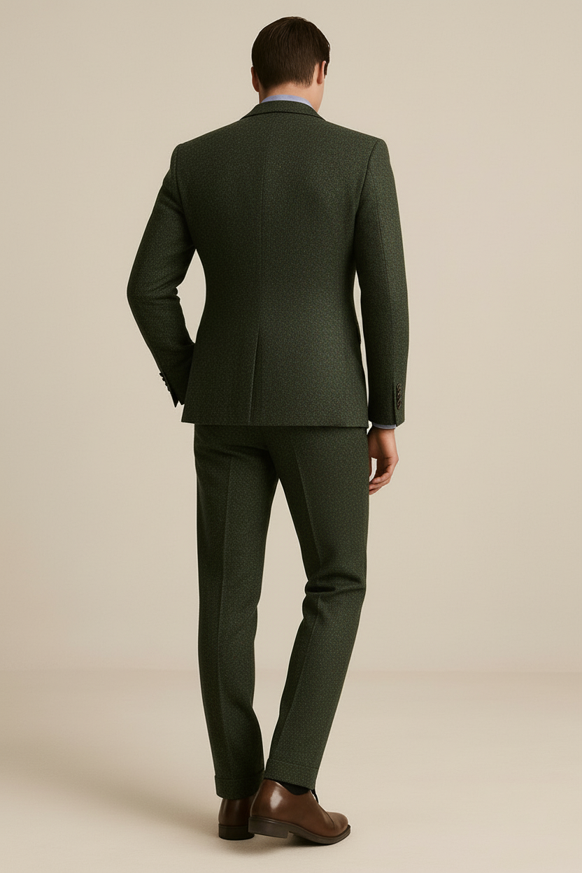 Men’s Tweed Green 3-Piece Tailored Suit – Classic Tuxedo