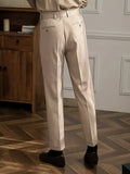 Pleated British Style Tailored Trousers - Straight Fit High Rise