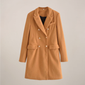 Women’s Camel Structured Peacoat – Double-Breasted with Gold Buttons