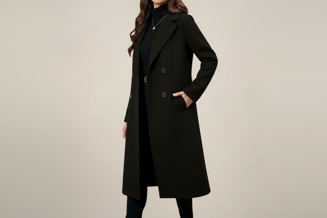 Women’s Double-Breasted Long Overcoat – Belted Tailored Fit for Autumn & Winter