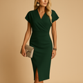 Women’s Midi Dress with V-Neck – Elegant Fit with Front Split for Day and Evening Wear
