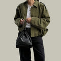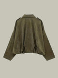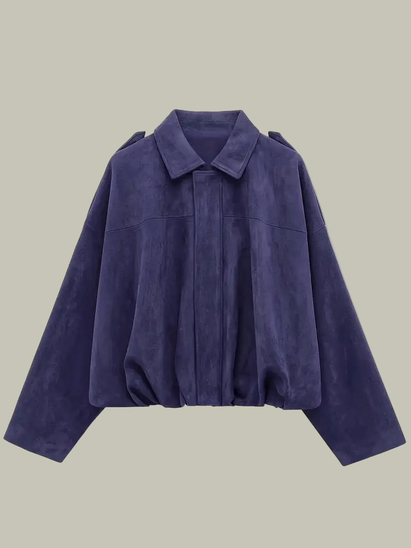 A modern layer with retro ease, this short jacket brings soft, faux-suede texture and a relaxed, oversized drape. The clean spread collar and concealed front keep the silhouette minimal, while the gathered hem creates a flattering blouson shape that works over tees, knits and dresses. Effortless to style for coffee runs, city strolls and laid-back evenings.