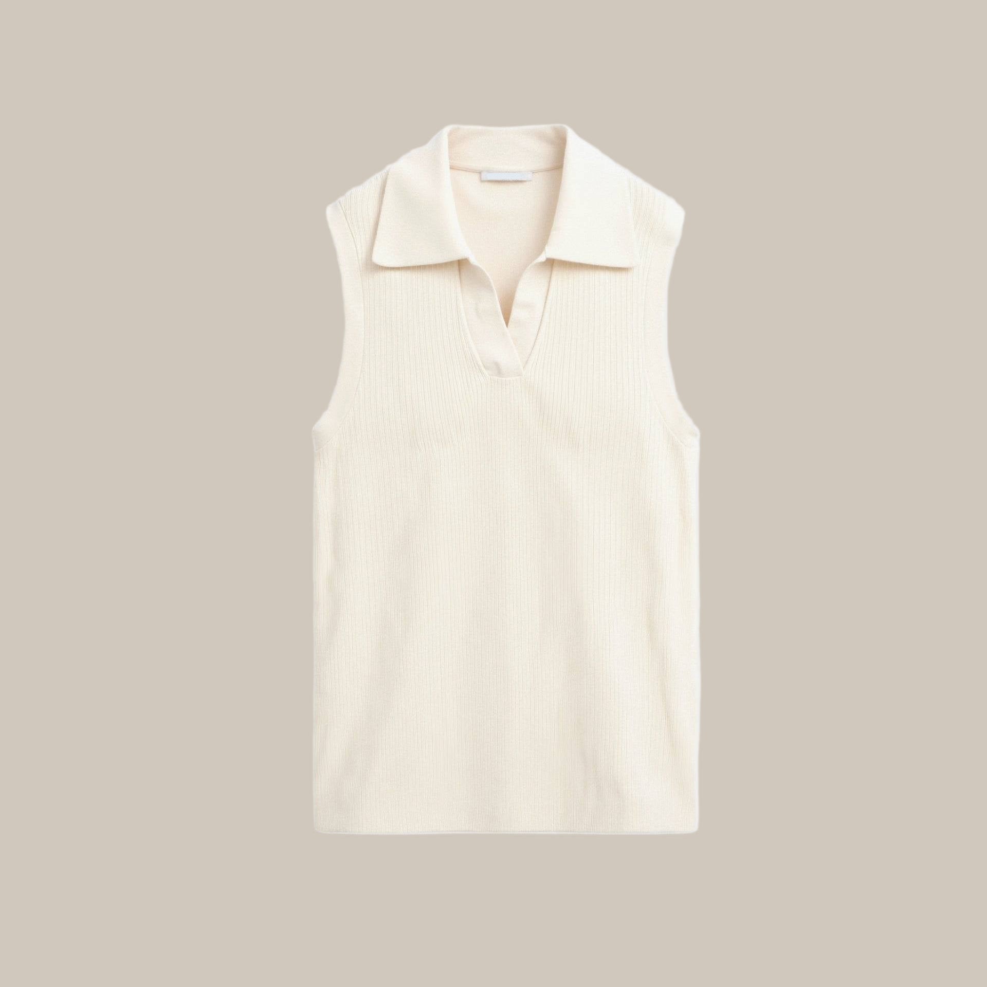 Women’s Sleeveless Knit Top – Open Collar V-Neck