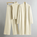 Women’s Three-Piece Lounge Set – Ribbed Knit Top, Wide-Leg Trousers & Longline Cardigan